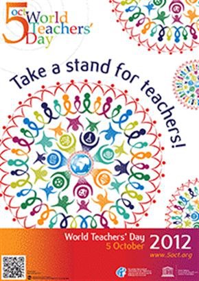 Out 4, 2012 Açores 5 de Outubro – Dia Mundial dos Professores Criado pela Unesco em 1994, o Dia Mundial dos Professores tem como “objectivo lembrar o papel essencial dos professores para uma educação de qualidade para todos, em todos os níveis de ensino.” “Valorizemos os Professores” SHARE THIS ARTICLE